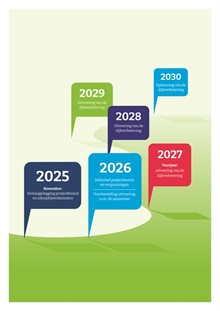 Op dit moment kunnen we nog niet precies zeggen wanneer de werkzaamheden aan de dijk starten en afgerond zijn. We verwachten dat we eind 2025 het projectbesluit ter inzage kunnen leggen. Daarna volgt de officiële goedkeuring en bereiden we de uitvoering verder voor. Het plan is dat de aannemer in de zomer van 2025 aan boord is. Naar verwachting starten we in de loop van 2027 met de werkzaamheden aan de dijk. De uitvoering zal ongeveer 3 jaar in beslag nemen. Deze wordt in deeltrajecten uitgevoerd. Er wordt dus niet overal tegelijk gewerkt en de planning hiervan is nog niet bekend.