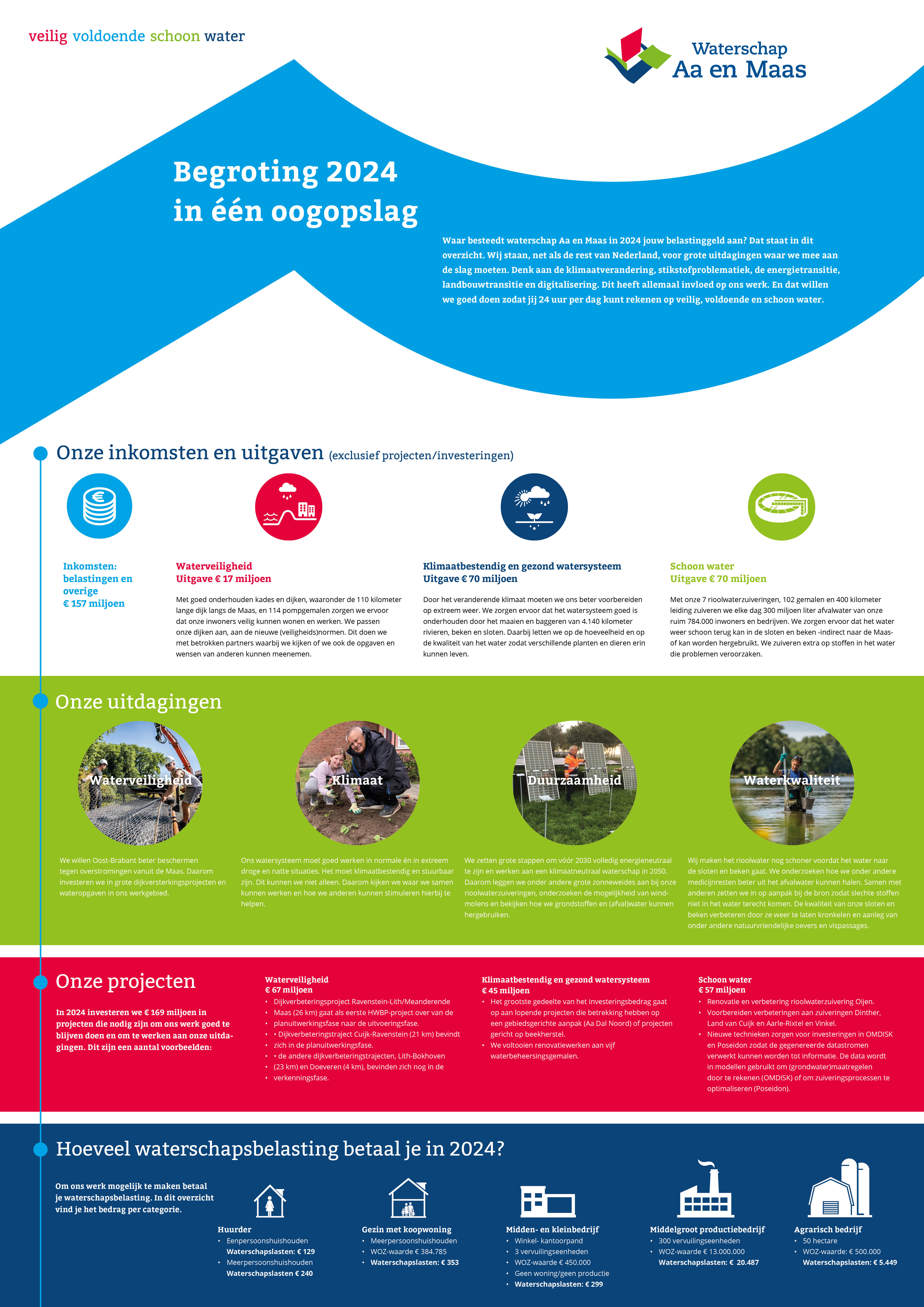 Op vrijdag 17 november heeft het algemeen bestuur van waterschap Aa en Maas ingestemd met de begroting voor 2024. In de begroting staan de belangrijkste activiteiten voor 2024 en het geld dat daaraan besteed wordt. Deze begroting bepaalt wat alle inwoners en bedrijven in het werkgebied van Aa en Maas in 2024 aan waterschapsbelasting moeten betalen.