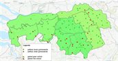 Bekijk de kaart met de rood- en groengekleurde gebieden.