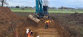 Langs de dijk, op het deel waar een klei-inkassing wordt gerealiseerd, worden in de eerste fase van het onderzoek zeven proefsleuven gegraven met een grootte van circa zes meter bij zestig meter. Deze proefsleuven komen haaks op de dijk. Indien we hier archeologische ontdekkingen doen, dan worden er mogelijk nog zeven proefsleuven gegraven tussen de sleuven die we hier al gerealiseerd hebben.